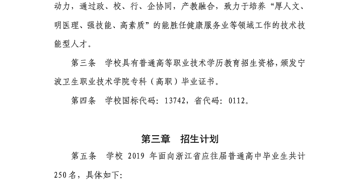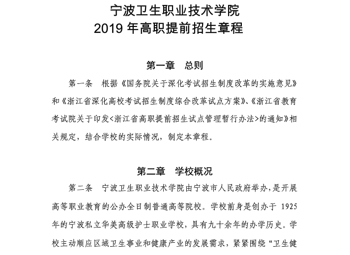 宁波卫生职业技术学院2019年高职提前招生章程